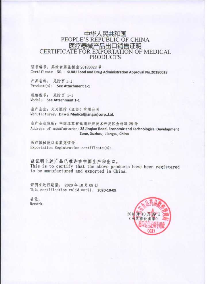 醫(yī)療器械出口證明