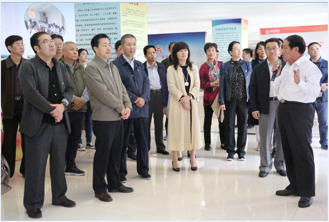 隨后,領(lǐng)導(dǎo)們來到黨群服務(wù)中心,重點(diǎn)參觀和了解集團(tuán)的黨建工作情況。集團(tuán)黨委副書記杜伯坤從黨委創(chuàng)新打造“學(xué)習(xí)型、服務(wù)型、創(chuàng)新型、勤廉型”黨組織等方面,介紹了集團(tuán)黨組織的基本情況、圍繞生產(chǎn)經(jīng)營(yíng)開展黨的建設(shè)的主要做法以及做好黨建工作的思考和體會(huì)。