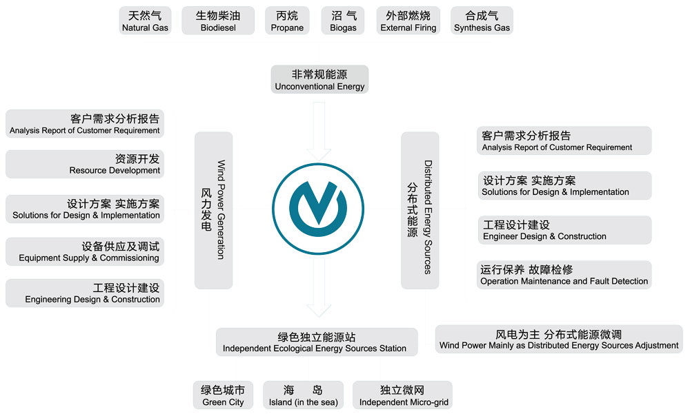 分布式能源業(yè)務(wù)主要包括分布式能源項目的開發(fā)、投資和建設(shè),以及分布式能源站配套設(shè)備的生產(chǎn)和安裝。主要推廣燃?xì)鉄犭娐?lián)供技術(shù),通過能源的梯級利用,可使能源總利用效率達(dá)到80%以上。適用于城市綜合體、醫(yī)院、賓館、工業(yè)園區(qū)、大學(xué)城等熱負(fù)荷區(qū)域。